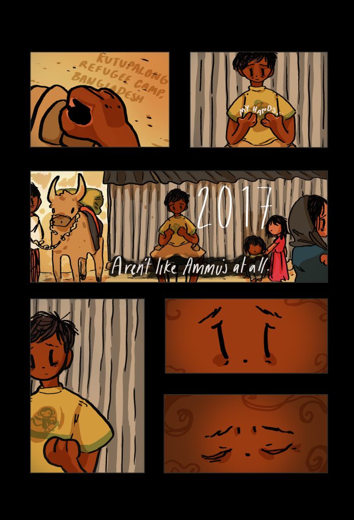 In late 2021/2022, I created an 8-page comic centering on the Rohingya Genocide as a part of a college-driven brief.
